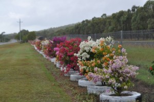 On to Airlie from Rockhampton, about 5 hours drive I think. Pretty cruisy, drizzling rain but warm. Cute little spot where the Bruce Highway meets the ocean called Clairview, where they have painted truck tyres white and planted a massive row of bouganvillea, all different colours, all along the wire fence separating the strip of houses from the highway. Stunning! I can just imagine it in years to come when the bouganvillea has climbed all over the fence.