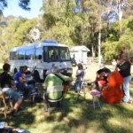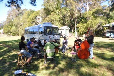 We’ve just made it through an enormous weekend at the historic Apollonian Hotel at Boreen Point on the Sunshine Coast. Pickers came from near and far (Bathurst / Brisbane / Tambourine Mtn / Melbourne ) to get into the spirit for the upcoming Beechworth festival and we all put in a big effort – jamming all night Friday night in the bar, Sat afternoon for the official picking session and Sat night back in the bar. Sunday, Peter and I were performing at the spit lunch which had bookings for 350 people!! With all the pickers still in attendance for lunch, we were joined by Dave Peters on the banjo, Steve Treloar on the mandolin, Stewie Porter on guitar and harmonica and Michelle Freeman on fiddle. Thanks Guys!!! What a treat to get to play with you all again – and all together! Then most of us backed it up with some more picking at Steve and Sue Treloar’s house! I can tell you – it has taken a few days to recover! A big special thanks to Lou and Neil Paynter for hosting us this week – wonderful friends that we’ve made in the last few years! We love you guys! Good luck with the pub!!! We look forward to the next time – whenever that may be!